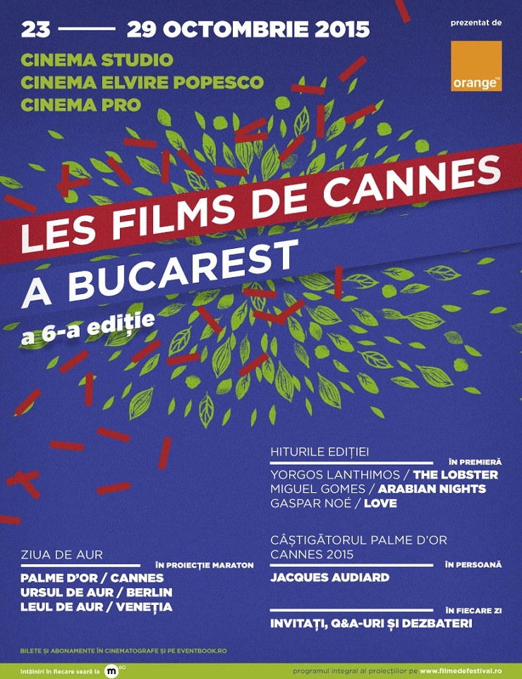 Cea de-a șasea ediție a Les Films de Cannes à Bucaresta avut loc între 23 și 29 octombrie (zile urmate de alte 3 zile cu proiecții speciale sau suplimentare) la Cinema Studio, Cinema Elvire Popesco și CinemaPRO. Les Films de Cannes à Bucarest a fost inițiat în 2010 de regizorul Cristian Mungiu, cu sprijinul Delegatului General al Festivalului de la Cannes,Thierry Frémaux. Inițiativa a generat un trend, festivalul extinzându-se în 2014 la Buenos Aires, sub denumirea Semana de Cine del Festival de Cannes. Plănuim să ducem filmele peste tot în lume. Cristian Mungiu organizează deja un festival în București. Nu e atât de important pentru noi, cât este pentru filme, declara Thierry Frémaux anul trecut, pentru „Variety”.