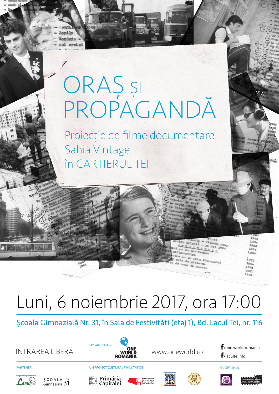 În perioada 4-11 noiembrie 2017, One World Romania organizează în București o serie de evenimente și proiecții speciale dedicată documentarelor realizate de Studioul Alexandru Sahia, “fabrica de realitate” a României socialiste între anii 1950 și 1990. Anul acesta, selecția de filme propune tema „Oraș și propagandă” și cuprinde scurt-metraje care vorbesc chiar de orașul București.