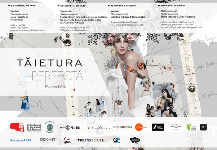 În cadrul proiectului ″Tăietura perfectă″, vor avea loc o serie de evenimente în luna octombrie, în București : vernisajul Tăietura perfectă, artist Marian Pălie, joi, 15 octombrie, ora 19:00, la Galeria Posibilă (str. Popa Petre, nr. 6), conferința ″Tăietura perfectă″, Marian Pălie, Valentina Vidrașcu, Ștefan Câlția, pe 22 octombrie, de la ora 18 :30, la UNA Galeria (str. Budișteanu, nr. 10) și vernisajul Tăietura perfectă, la Showroom-ul Valentina Vidrașcu, pe 29 octombrie, de la ora 19:00 (strada General Berthelot 5, interfon 10).